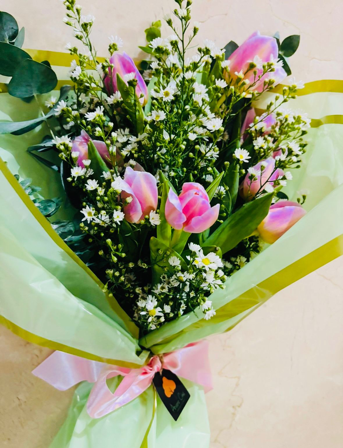 Trabalhamos com uma curadoria cuidadosa de flores da estação, fornecedores locais e embalagens sustentáveis. Cada criação é única feita à mão e pensada para quem vai receber.
